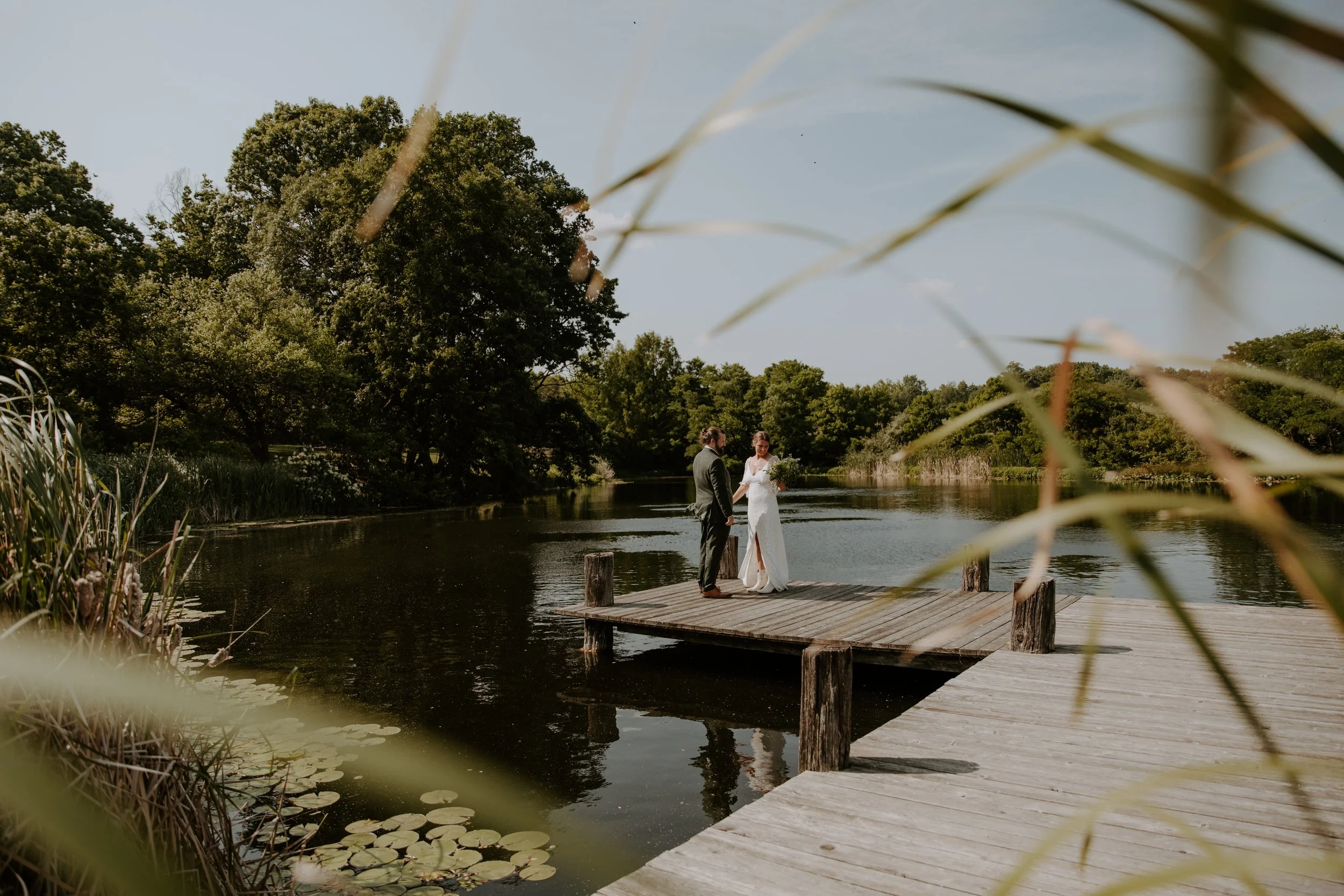 Trader’s Point Creamery is not only a great place to grab a farm fresh organic meal or homemade ice cream, it can be a beautiful location to say “I do!”. The 180-acre family owned farm has multiple backdrops for your ceremony and photos that can all be incorporated into your time there. The most popular spots being the beach and dock (with a boat to go out on the pond), open grass fields where you can watch the cows graze, gardens bursting with color and greenery, and a rustic barn. To end your elopement day, you can head up to the Roost to enjoy a meal with your guests that’s prepared by the in-house chefs using ingredients grown and produced right there on the farm.